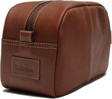 Timberland Men's Rugged Leather Wash Travel Kit Toiletry Bag - Cognac